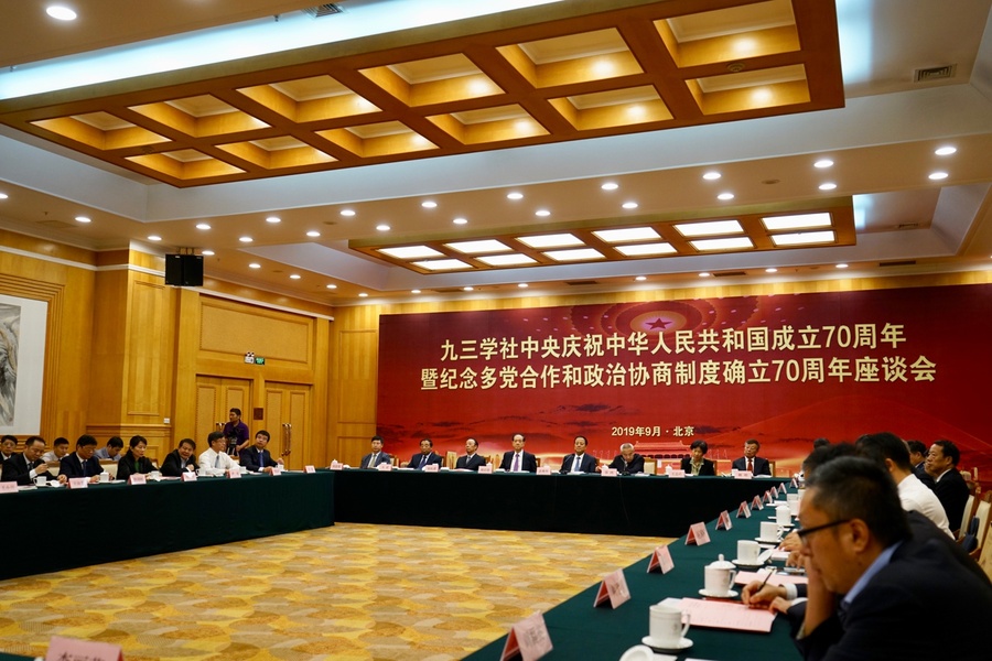 9月16日,九三學社中央在京召開慶祝中華人民共和國成立70周年暨紀念多黨合作和政治協商制度確立70周年座談會。九三學社中央主席武維華出席并講話,九三學社中央常務副主席邵鴻主持會議。九三學社中央副主席賴明、叢斌、印紅、劉忠范,九三學社中央在京老領導韓啟德、王志珍、陳抗甫參加會議。