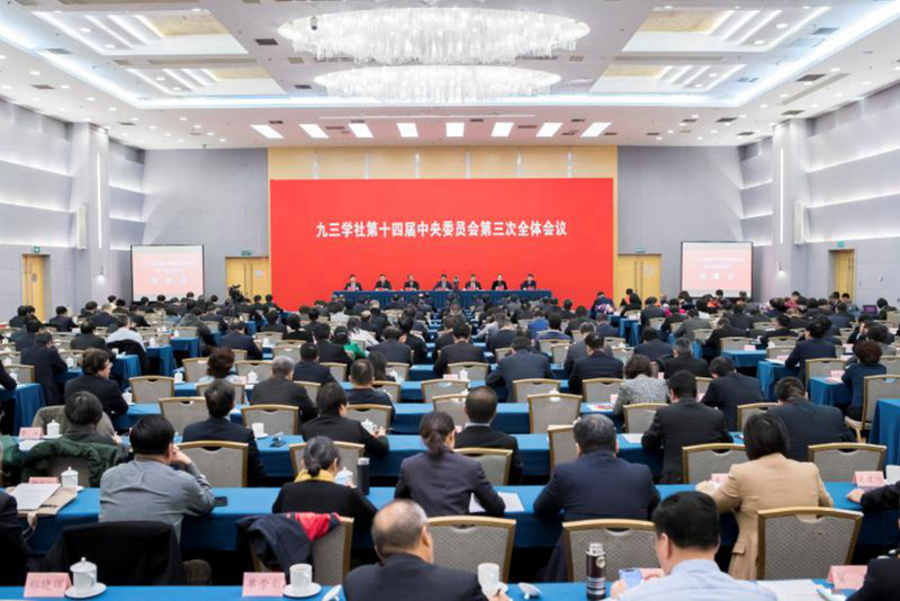 12月13日,九三學社第十四屆中央委員會第三次全體會議在京閉幕。會議認真學習貫徹習近平新時代中國特色社會主義思想和中共十九屆四中全會精神。審議通過了九三學社中央常務委員會2019年工作報告、社中央監督委員會2019年工作報告,審議了十四屆二中全會委員建議案辦理工作情況的報告,表彰了第五批“九三楷模”、2019年度信息工作先進單位和先進個人。九三學社中央主席武維華出席閉幕會并講話。九三學社中央副主席賴明、叢斌、趙雯、盧柯、黃潤秋、劉忠范出席閉幕會。閉幕會由盧柯主持。