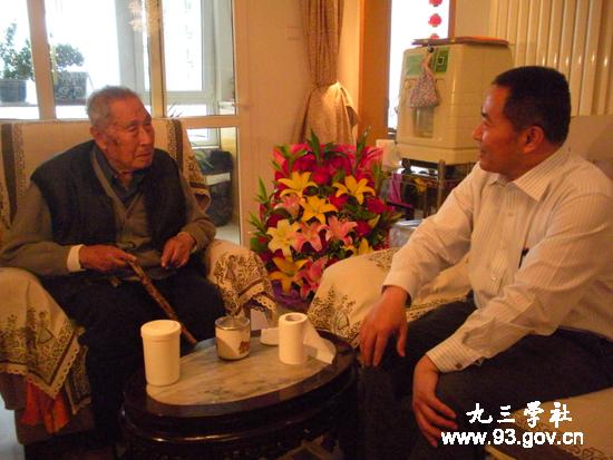 楊起院士的父親楊振聲先生是五四運動當天被當局逮捕的32名學生之一,曾任清華大學、西南聯合大學和北京大學教授,國立青島大學校長。這32名學生當中的四人后來成為了九三學社的成員,他們是許德珩、潘菽、楊振聲和初大告。邵鴻說:“楊老的父親楊振聲先生是著名的文學家、教育家;哥哥楊文衡是著名的生物學家;楊老本人是著名的地質學家。楊家父子三人被稱為‘楊氏三杰’。他們都是九三人,九三學社引以為驕傲”。楊老向邵鴻贈送了正在修訂中的《楊振聲先生年譜》和《地質人生——楊起院士九十華誕文集》。邵鴻請楊老抽時間回憶、整理“楊氏三杰”的資料,以豐富社史檔案,并表示等《楊振聲先生年譜》修訂好以后,社中央將資助出版。